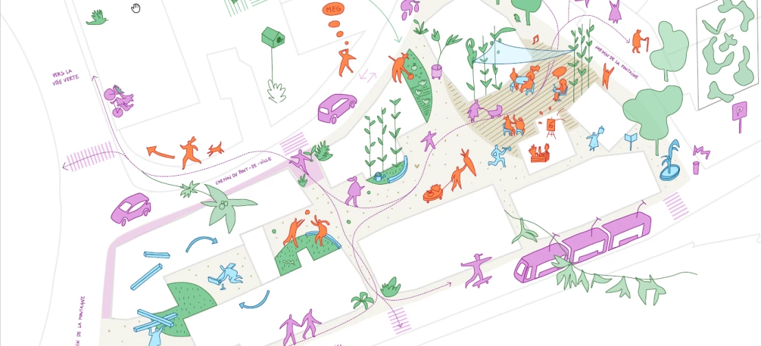 L’articulation du projet avec l’espace public est à l’origine de fortes synergies entre la Codha et la commune de Chêne-Bougeries dont nous saluons l’esprit d’ouverte et la volonté de collaboration. Le projet « Coeur de parc» du bureau Urbanité(s) est désigné lauréat du concours sur espace public en février 2024.