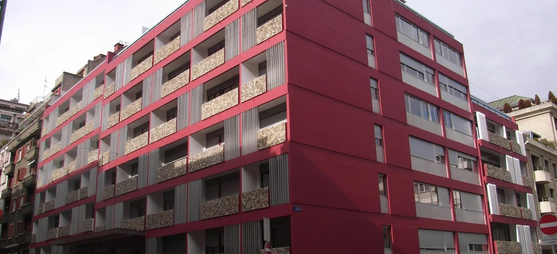 Réalisé par l'architecte Italo Galeotto en 1972, l'ancien hôtel, rénové en 2010, propose désormais 52 studios équipés de petites cuisines et de balcons, alors que le rez-de-chaussée abrite une généreuse salle commune et cuisine collective dans ce qui fût l'ancien restaurant et renommé chinois de l'hôtel Carlton**** !!!