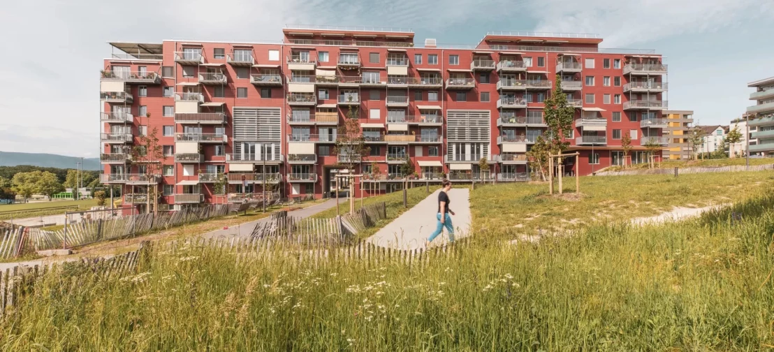 La Commune de Meyrin a piloté la réalisation d'un éco-quartier exemplaire, à la taille conséquente, de 1'200 logements.